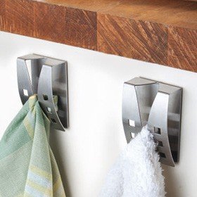 Maintain a tidy kitchen by clipping tea towels to these decorative, contemporary hooks. The perfect tea towel storage solution! Keep your kitchen tidy and tea towels to hand with these contemporary adhesive Stainless Steel Tea Towels Hooks. Fit easily to your wall or any kitchen surface.