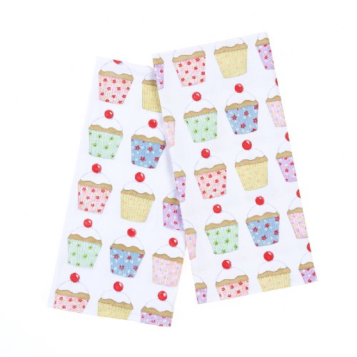 Mad About Cooking Cupcakes Printed Tea Towels, Pack of 2