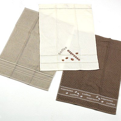 kitchen towels are woven with an attractive coffee and espresso design