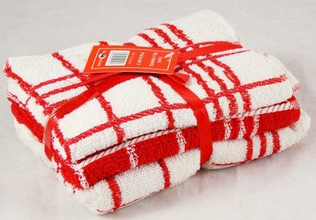Pack of 3 RED & WHITE 100% Cotton Terry Tea Towels