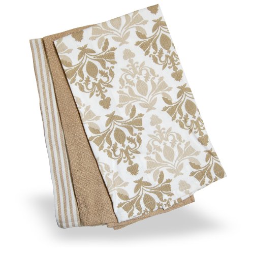Cream, White & Latte Damask Patterned 3 Tea Towel Set