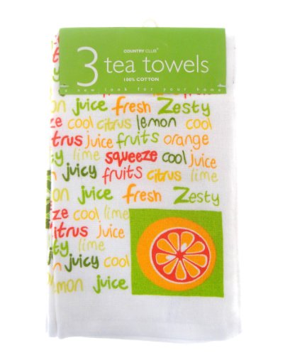 Pack Of 3 Zesty Tea Towels 100% Cotton