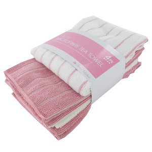 Soft 4 Pack of Kitchen Tea Towel - Pink Stripes