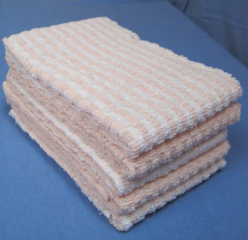 5 Piece Cotton Tea Towel Set Checked And Plain Pink
