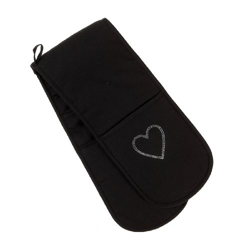Mad About Cooking Crystal Heart Rhinestone Double Oven Glove, Black
