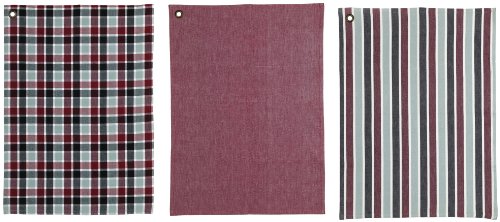C'est Ca Tea Towels with Eyelet feature, Set of 3, Red/ Grey