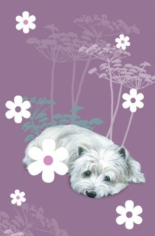Daisy Daisy Westie Tea towel.Fab tea towel showing the gorgeous Daisy Daisy Westie design. It is 100% cotton. Measurements 48cm x 73cm. Machine washable.
