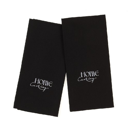 Mad About Cooking Home Cooking Embroidered Tea Towels, Black, Pack of 2